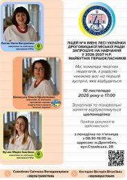 Запрошуємо майбутніх першокласників на навчання у ліцей №4 імені Лесі Українки!